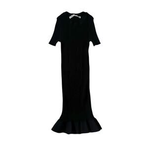 ALEXANDER WANG RUNWAY BLACK RIBBED HIGH NECK FLARE HEM MINI DRESS SMALL