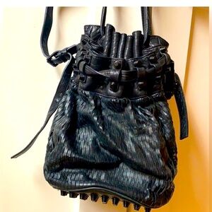 Alexander Wang Shredded Leather Black Studded Diego Convertible Bag