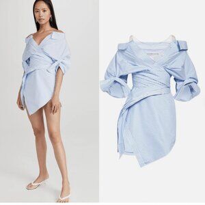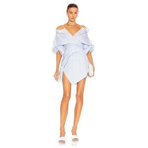 Alexander Wang Size 14 Wrap Mini Blue White Shirt Dress Striped
