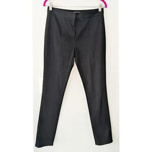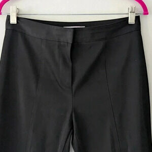 Slim fit black dress pants featuring a pinched seamed front and slight shine to them.