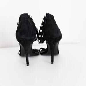 Alexander Wang Studded Antonia Ankle Strap Heel Black Suede Sandal Size 37.5
