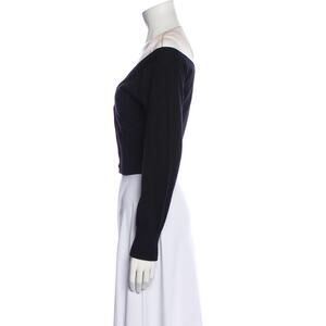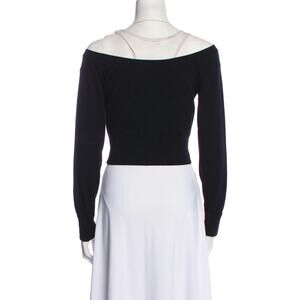Featuring an off-the-shoulder V-neckline, long sleeves, and a button-front closure. Designed with a slim, cropped silhouette and ribbed cuffs for a sleek finish. Fits true to size