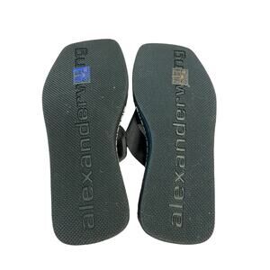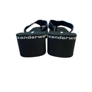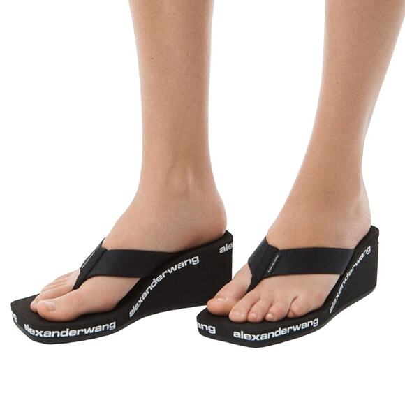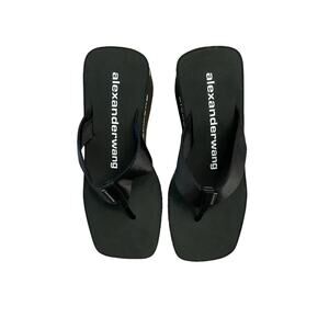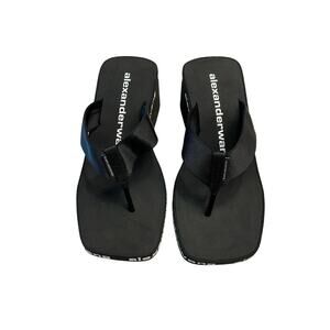 Alexander Wang Wedge Flip Flop Thong Sandals Logo Print Square Toe Black Size 37