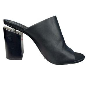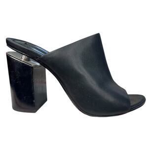Alexander Wang Women’s Avery Black Leather Block Heel Mules Size 38.5 US 8.5
