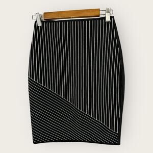Alexander Wang Womens Size Medium Striped Pencil Skirt Stretch Black White