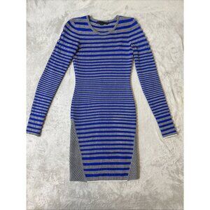 Alexander Wang XS Blue Gray Striped Knit Long Sleeve Fitted Sweater Dress Mini. Condition is Pre-owned - Excellent. Shipped with USPS First Class.