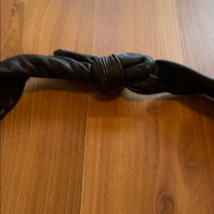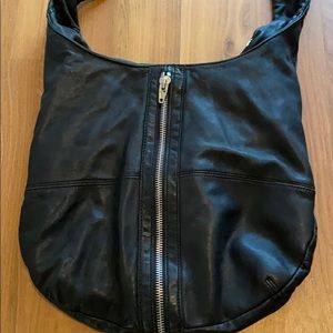 Black leather with tons of zipper detail and pockets. Knot tied strap. Comes with dustbag and authentic card and tags.