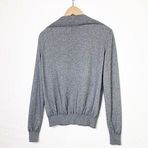 This pre-owned sweater is a size XS and will fit a regular size person. The sweater comes in a beautiful gray color and is perfect for any occasion. Made by an esteemed brand, this sweater is a must-have for any fashion-forward woman