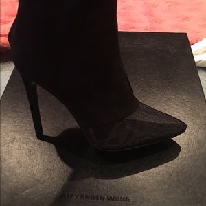 Black suede with mesh front Alexander Wang boots. These are super sexy! Even men compliment on them! Box & dust bag included. NO TRADES!! Merc available just ask.