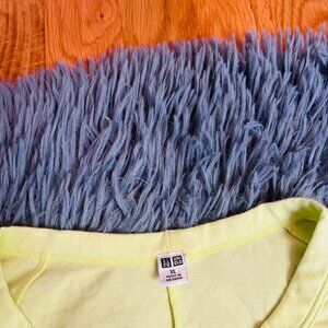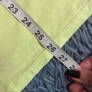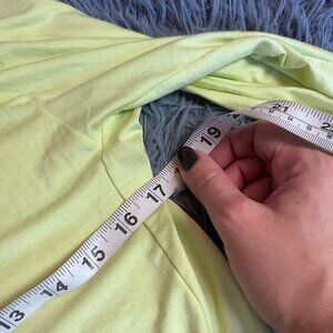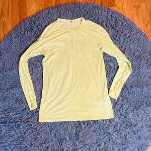 Soft neon light yellow/green top with long sleeves. Subtle branding on the front right corner. NO stains, rips, rates or fading.