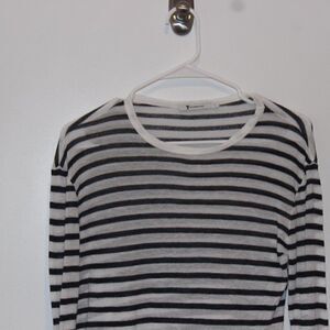 Alexander Wang Black & White Striped Long Sleeve Round Neck Blouse Women's SZ S