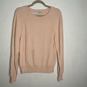 This Alexander Wang Womens Large Neck Muscle Pullover Ribbed Knit Tan Neutral
