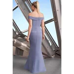 Style 1159 from Alexander by Daymor is an off the shoulder fitted gown that sheer deem sweetheart neckline and a pleated bodice.