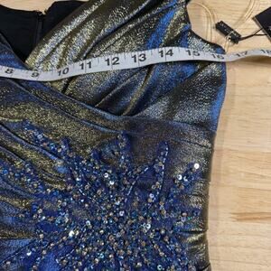 Alexander by Daymor NWT Pleated Embellished Mermaid Gown Size 6 Iridescent Blue