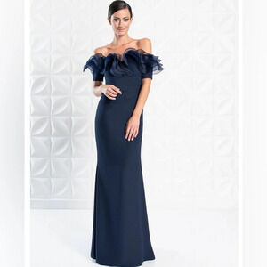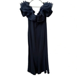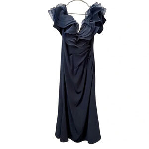 Alexander by Daymor Navy Blue Ruffled Off The Shoulder Sheath Dress 1257 Size 16