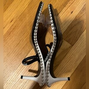 Alexander wang white leather slingback sandals. Comes with original dust bag. Minor wear at soles. Very good condition. Heel is 2.75”