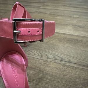Alexander McQueen Stiletto Sandal Heels Pink Calf Leather Satin US 6.5 / 36.5