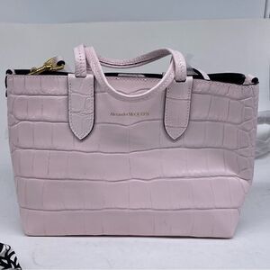 Alexander McQueen Croc Embossed Leather Mini Satchel Pink
