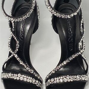 Alexander McQueen Crystal-Embellished Satin High-Heel Sandals size 38.5