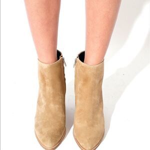 Rhodium-tone hardware puts a sleek finish on these suede Alexander Wang booties.
