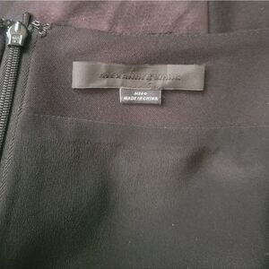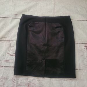 Stunning black tuxedo style mini skirt with satin panels front and back. Zipper in the back, faux pockets, and working buttons in front. In excellent condition.