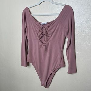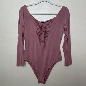 Alexanderwang T Long-Sleeve Bodysuit with Cutout and Ties Size Large Pink