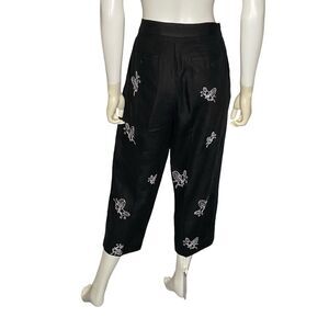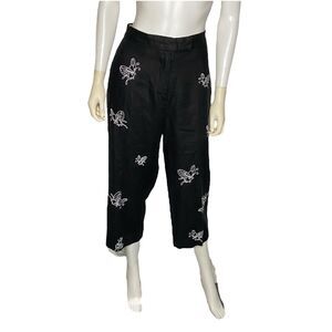 Black linen butterfly embroidered pants wide leg cropped lagenlook boho