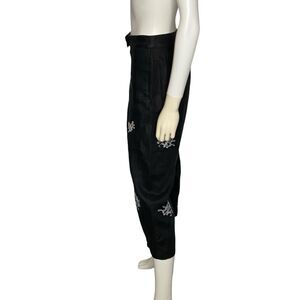 Alexandra Bartlett Black 100% Linen Embroidered Wide Leg Pants sz 8 Artsy Fairy