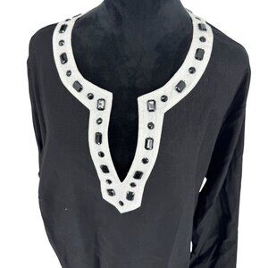 Alexandra Bartlett Womans Linen Tunic Top Size 3X Beaded Oversized Lagenlook