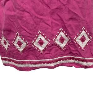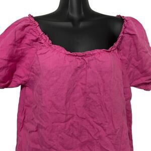 Alexandra Bartlett Womens Medium Short Ruffle Sleeve Crochet Diamond Linen Blous