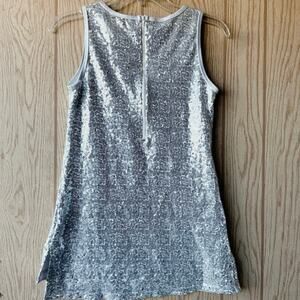 Alexandra Costumes sequin sleeveless tank top, high crew neck, fully lined with soft white cotton liner for comfort, double sided fully sequined, half zipper back, split hem, women's size S small in excellent condition.