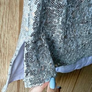 Style Features : sleeveless, round neck, back zipper, silver patterned sequins, lined