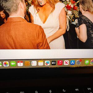 It was raining the day I wore the dress, wedding was outside- we had to tuck the train. After the ceremony I changed dresses, so there are no stains. The top button on the back needs some attention. Other than that this was an amazing dress that I will never wear again.