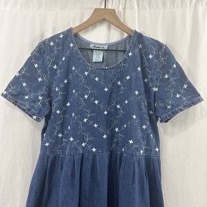 Alexandra Lee Vintage Denim Chambray Embroidered Maxi Dress Womens Size 14