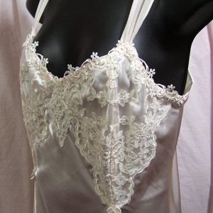 Alexandra Nicole Sexy Lacy Peach Satin Long Nightgown NWOT Size Small. So sexy lace and pearls make this a romantic a perfect honeymoon gown.