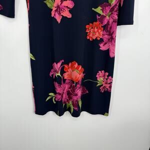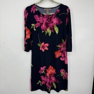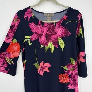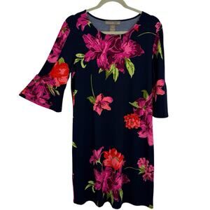 Alexandra Oak Shift Dress Size Medium Blue Floral 3/4 Flare Sleeve Preppy