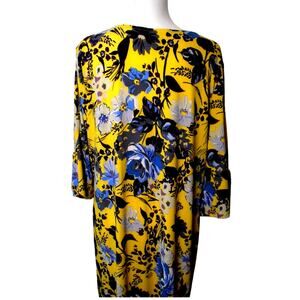 Alexandra +Oak Yellow Blude Floral Sheath Dress Size XL 3/4 Sleeves Flattering