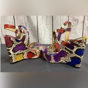 Alexandre Birman, 39.5 EU / 9 US, Snakeskin, Strappy Wedge Platform Shoes, EUC