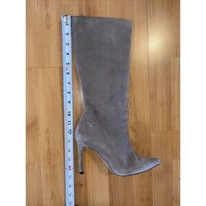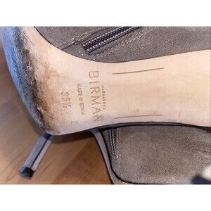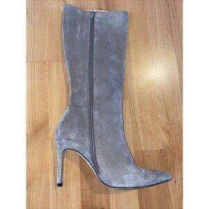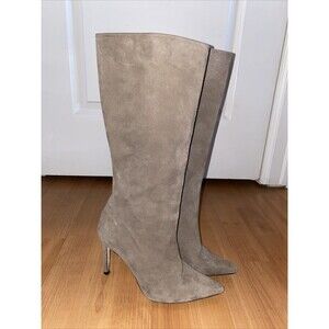 Alexandre Birman Beige Gray Suede Pointed Toe Zip High Heel Mid Calf Boot- 35.5