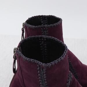 Alexandre Birman Benta Suede Ankle Boots Pre-Owned. No Flaws Noted - Size US 8.5 / EU 38.5 **According to the Website; the Style Runs Small. It's -Suggested to Order a Half Size Up from Normal Size** - Purple with Black Crochet Embroidery Detail - Suede - Leather Lining and Sole - Block Heel - Made in Brazil - Back Zip Closure - Heel Height: 2.4" - Style: Western Fashion * Measurements are Approximate. See Photo Gallery for Details * It's Recommended to Compare Measurements with Similar Boots You Own for Proper Fit
