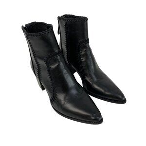 Crafted from premium leather, these boots feature intricate stitched detailing and a sleek pointed toe.