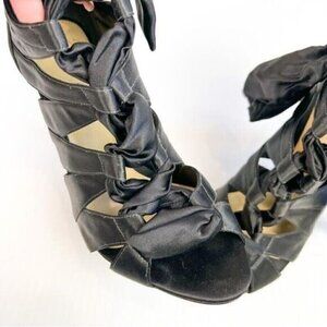 Alexandre Birman Black Satin Layla Ankle Booties EU 38.5 High Heeled Stiletto