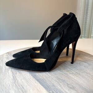 Up for sale I have this pair of Alexandre Birman Clarita Black Suede Ankle-Tie Pointed Toe Stiletto Pumps. EU size 36.5. US size 6.5. Original cost was $695 when purchased new. These heels are in excellent overall condition. Take a look at the photos and feel free to message me with any questions.