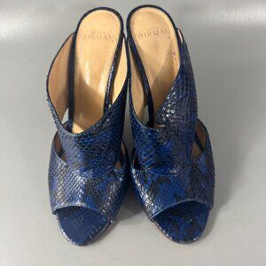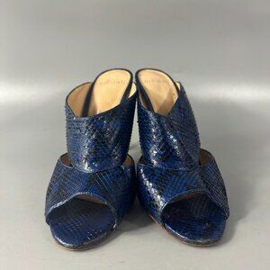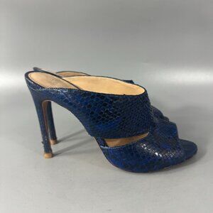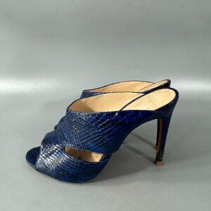 Crafted from exotic python skin in a blue hue, they carry a feminine design with cutout vamps and high stiletto heels.