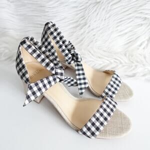 Alexandre Birman Clarita 60 Gingham Plaid Canvas Tie Open Toe Sandal Block Heels