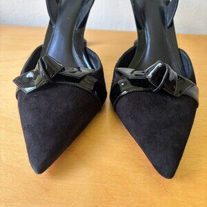 Clarita slingback pumps are crafted of smooth suede and grounded with a flared stiletto heel.