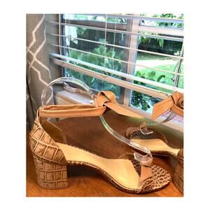 Alexandre Birman Clarita Beige Nude Croc Block Heel Sandal Ankle Wrap 40.5 9.5