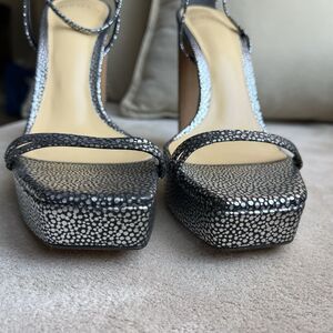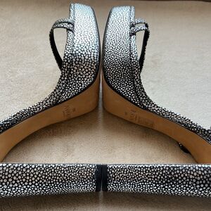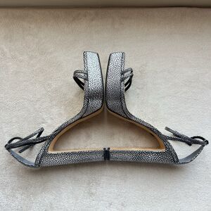 Alexandre Birman Lenny Silver On Black Leather Platform Heeled Sandal 39.5/9-9.5