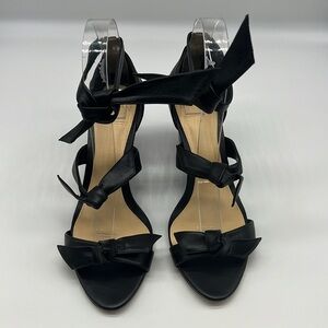Alexandre Birman - Lolita Giana Anabela Black Leather Bow Embellished Wedge 38