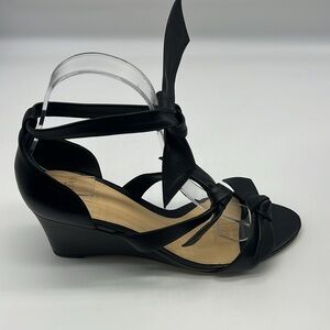 Alexandre Birman - Lolita Giana Anabela Black Leather Bow Embellished Wedge Sandals Size 38
